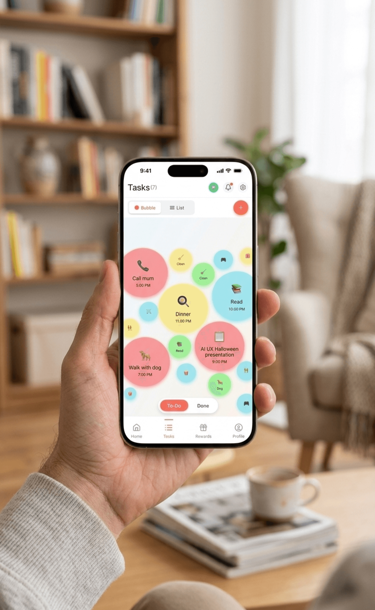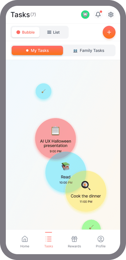4. This is bigger than chores. The bubble system works for anyone carrying tasks without clear deadlines — roommates, solo adults, small teams. What started as a family app is really a mental load visualiser for anyone who's ever said "I'll do it later" and meant it.