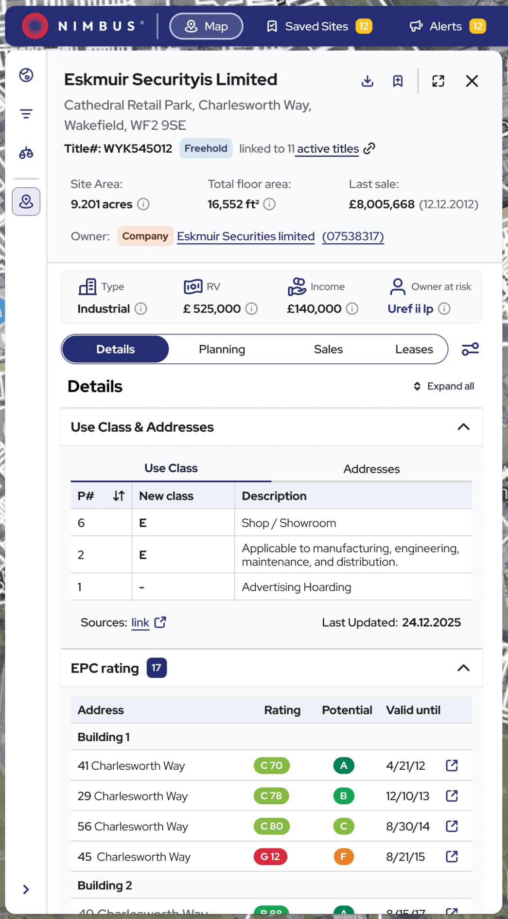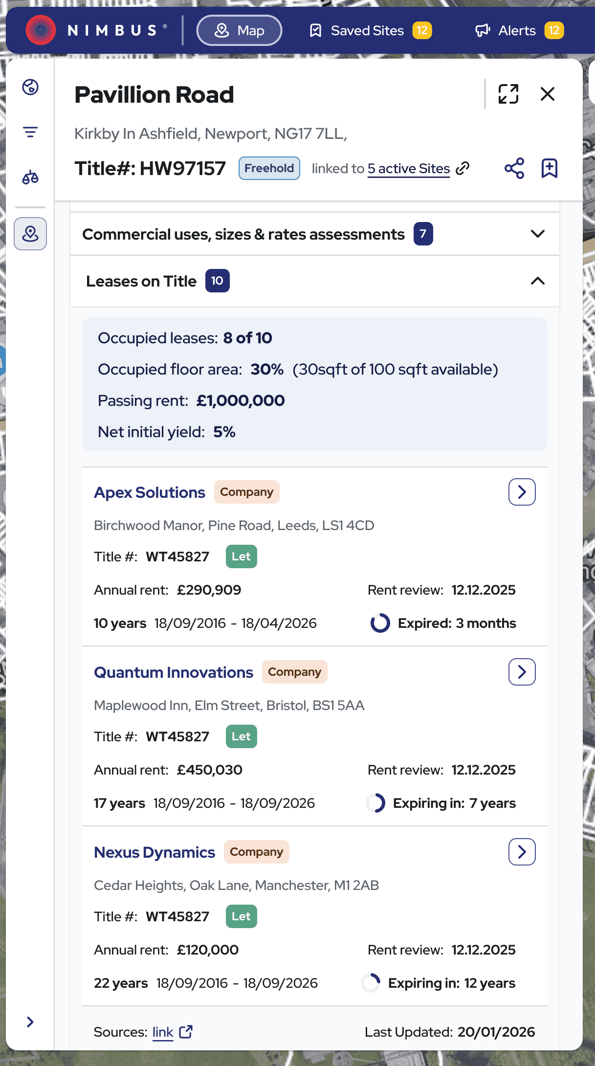 Comprehensive property data accessible on-site via mobile or during desk research on desktop. Designed for quick scanning and deep analysis depending on user context.